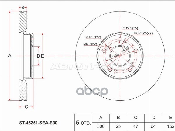 ST45251S10000PF//Комплект дисков тормозных передний перфорированные HONDA CR-V RD1 AT 95-, Accord/To