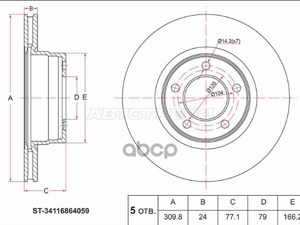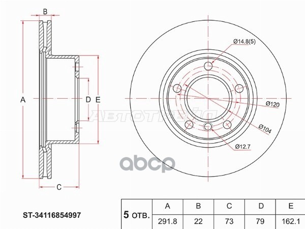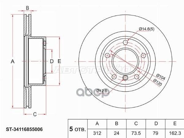 Диск тормозной (Перед) BMW 5-Series 03-10 / 6-Series 03-10 / Mitsubishi Eterna 88-92 / Galant 87-92