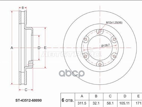 Диск тормозной (Перед) Toyota Crown 95-07 / Mark II (X90,X100,X110) 92-04 / Lexus GS 93-04 / IS 98-0
