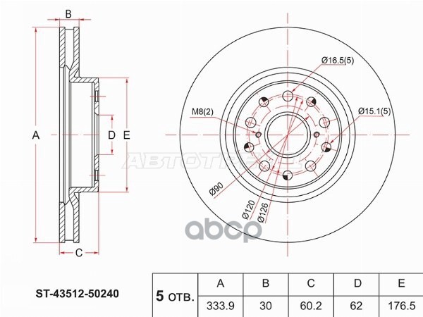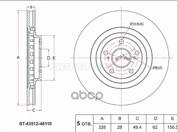Диск тормозной (Спереди) Lexus RX 15-22 / Toyota Camry Europe/Russia (XV70) 17-22 / RAV4 (XA50) 18-