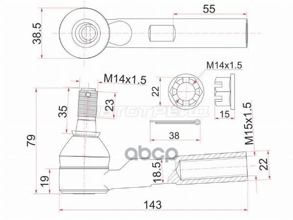 Наконечник рулевой TOYOTA BELTA 05-/ COROLLA AXIO/FIELDER 12-/PRIUS/VITZ/YARIS 2005-2014 RH