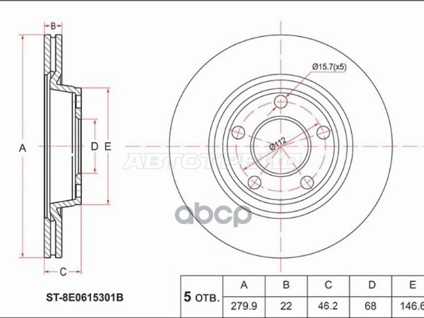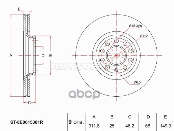 Диск тормозной (Перед) Audi A4 99-09 / A6 97-08 / A6 allroad quattro 00-05 / S4 03-05