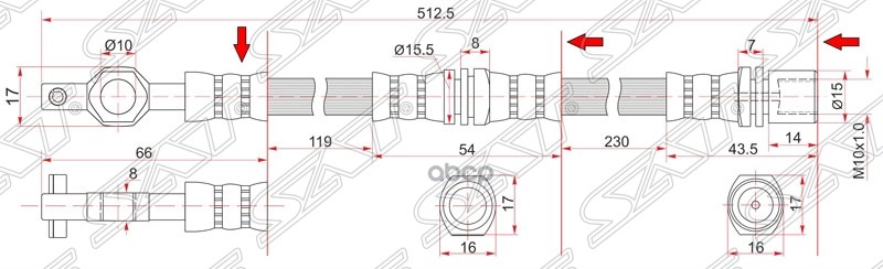 ШЛАНГ ТОРМОЗНОЙ ПЕРЕДНИЙ (ТАИЛАНД) TOYOTA DYNA 150/TOYOACE G15 95-01/HIACE 86-01 LH=RH ПРОМЕЖУТ.