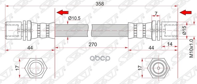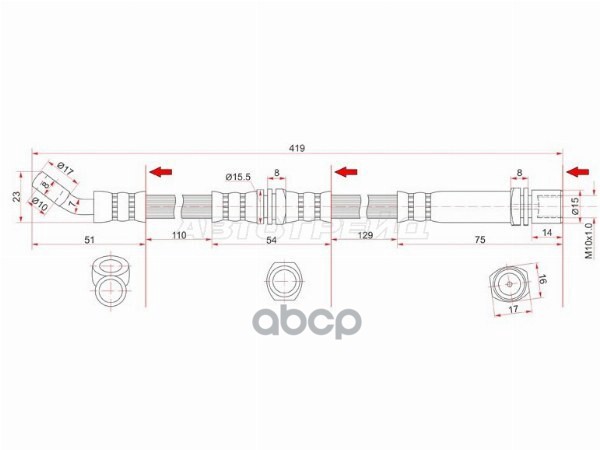 Шланг тормозной передний (Таиланд) TOYOTA DYNA 200/TOYOACE G25/HIACE/REGIUSACE 95-04/RR LITE/TOWNACE