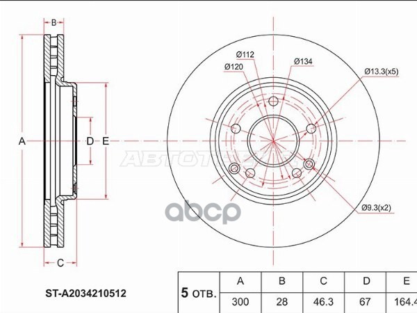 Диск тормозной (Перед) Mercedes-Benz C-Class 00-08 / E-Class 95-03 / Chrysler Crossfire 04-08 / Merc