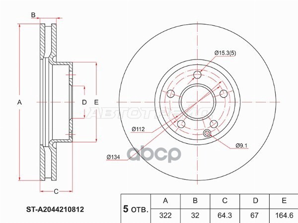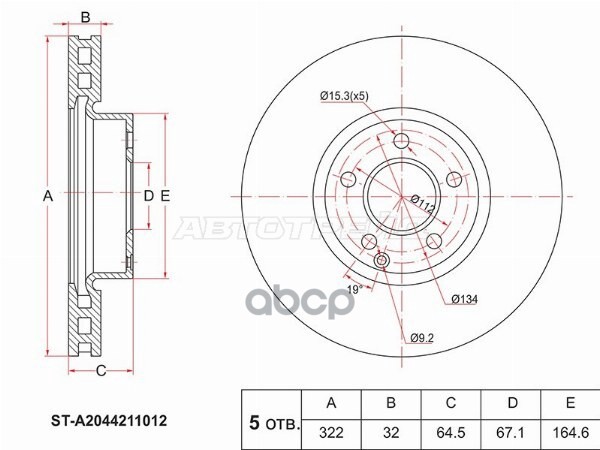 Диск тормозной (Перед) Mercedes-Benz C-Class 07-15 / E-Class 09-17 / SLK-Class 11-16