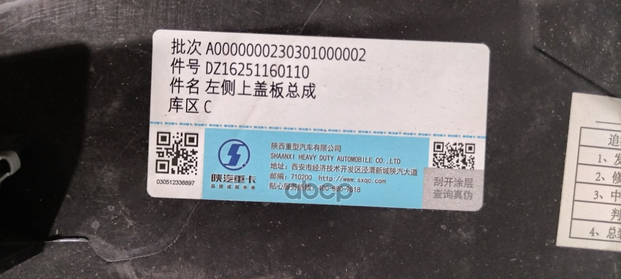 Наименование: Крышка в сборе левая верхняя X6000 SHACMAN Оригинал // DZ16251160110