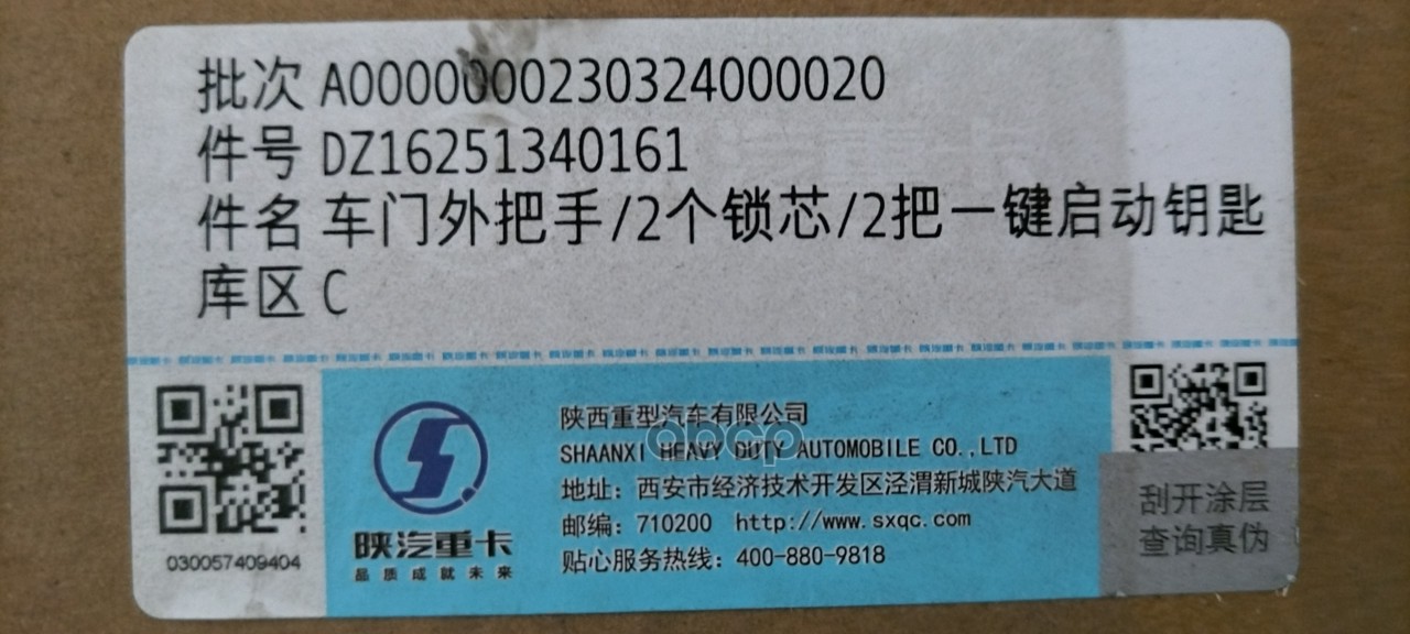 Бренд: Shacman, артикул: DZ16251340161, Личинка SHACMAN SHAANXI X6000 замка двери комплект (2 личинки, 2 ручки наружные, 2 ключа) OE. |