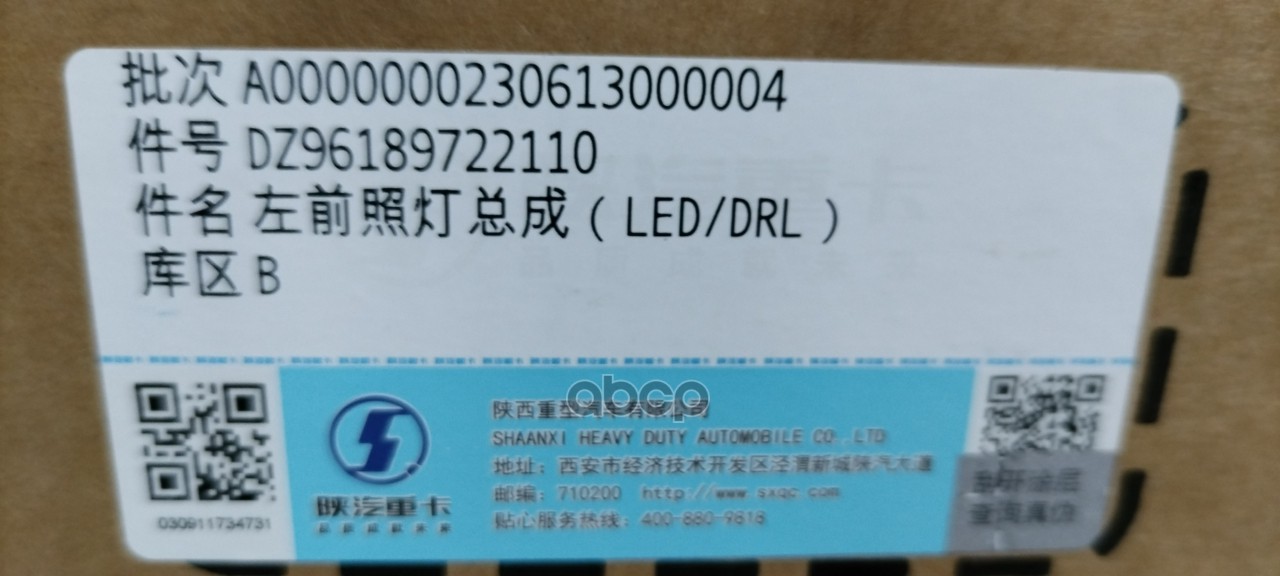Бренд: Shacman, артикул: DZ96189722110, ФАРА ПЕРЕДНЯЯ ЛЕВАЯ SHAANXI X3000РЕСТАЙЛИНГ СВЕТ. |