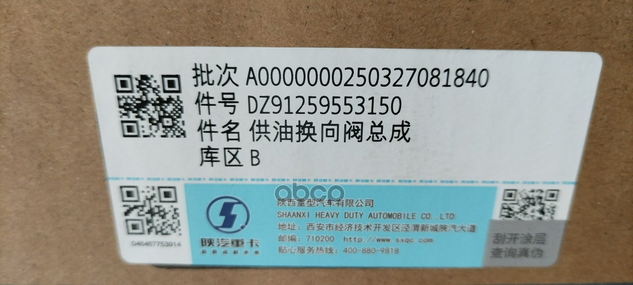 DZ91259553150 Клапан переключения топливными баками (электрический) SHACMAN X600