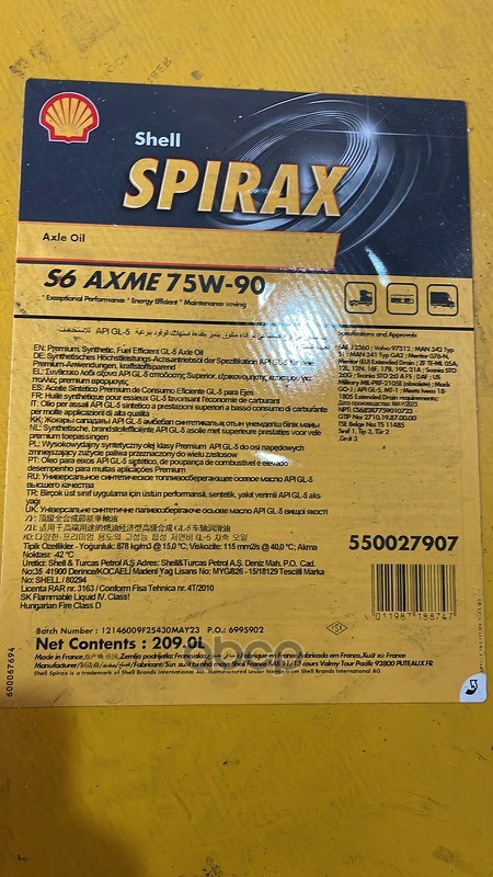 Купить запчасть 550027907 Shell Spirax S6 AXME 75W-90 209L_Франция с доставкой в Эль-Монте.