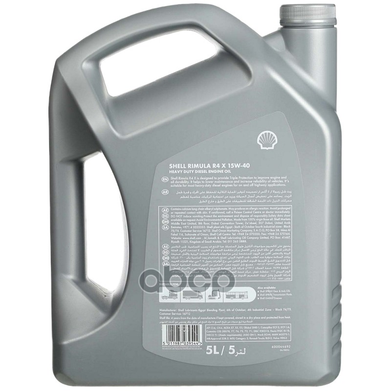 Наименование: МОТОРНОЕ МАСЛО SHELL RIMULA R4 X 15W-40 КАН. 5Л