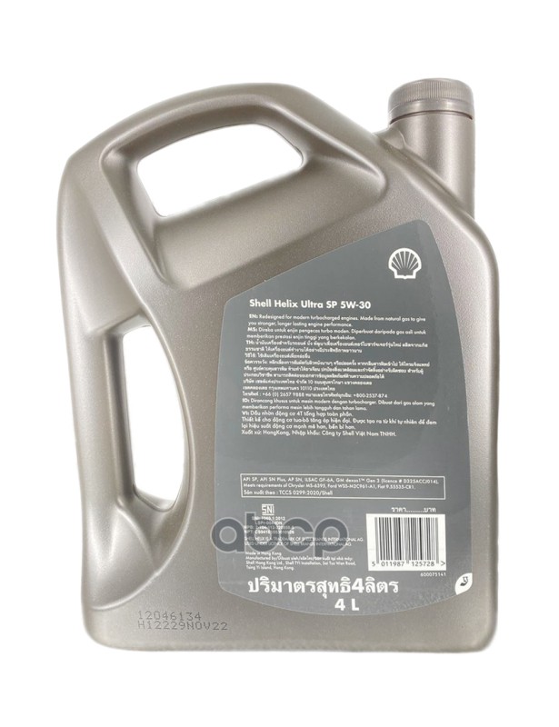 Наименование: Масло моторное SHELL HELIX ULTRA 5W-30 4Л 600075141