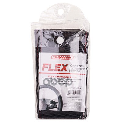 Наименование: Оплетка экокожа с перфорацией M (37-39 см) SKYWAY Design FLEX-8 Черная, красная строчка SKYWAY