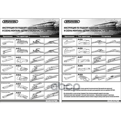Наименование: Щетка стеклоочистителя бескаркасная SKYWAY AQUA BLADE 9 адаптеров в коробке 60см/24" SKYWAY