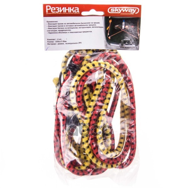 Наименование: Резинка для крепления багажа 100см*8мм SKYWAY 2шт метал. Крюк SKYWAY
