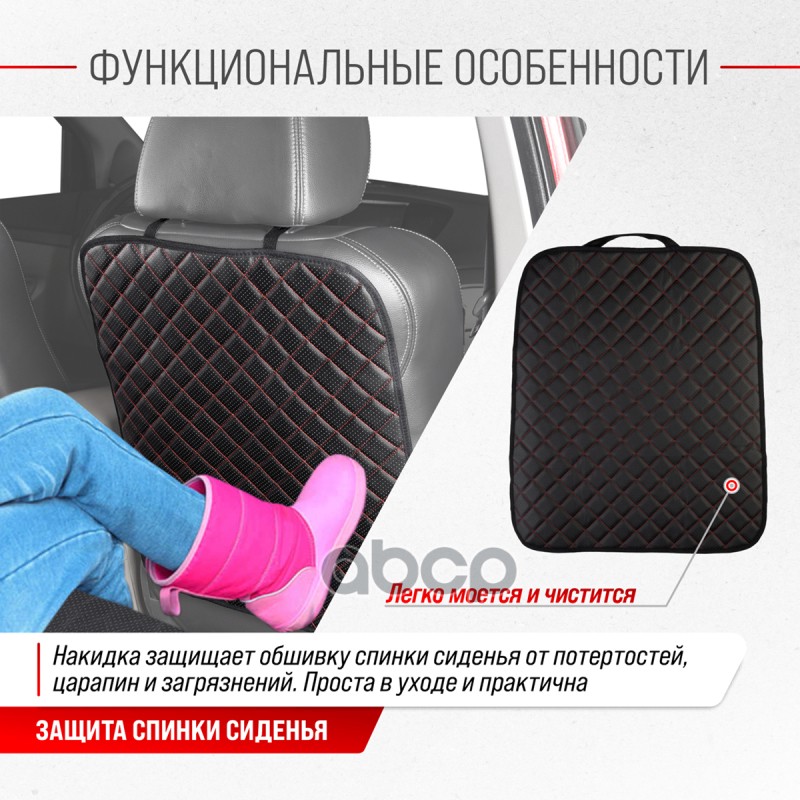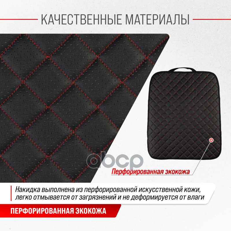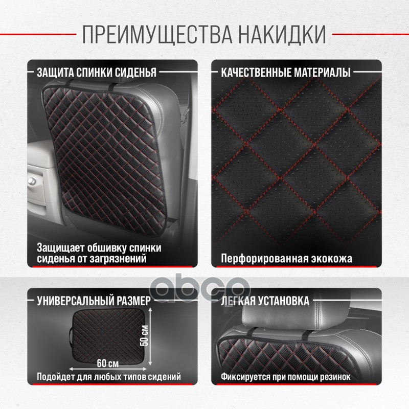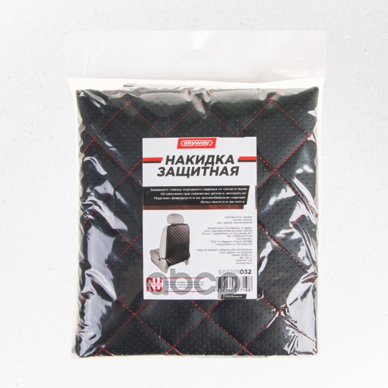 Наименование: Защита спинки сиденья SKYWAY 60*50см кожа иск.перф.Черная (строчка Красная) SKYWAY RUS