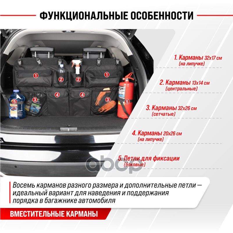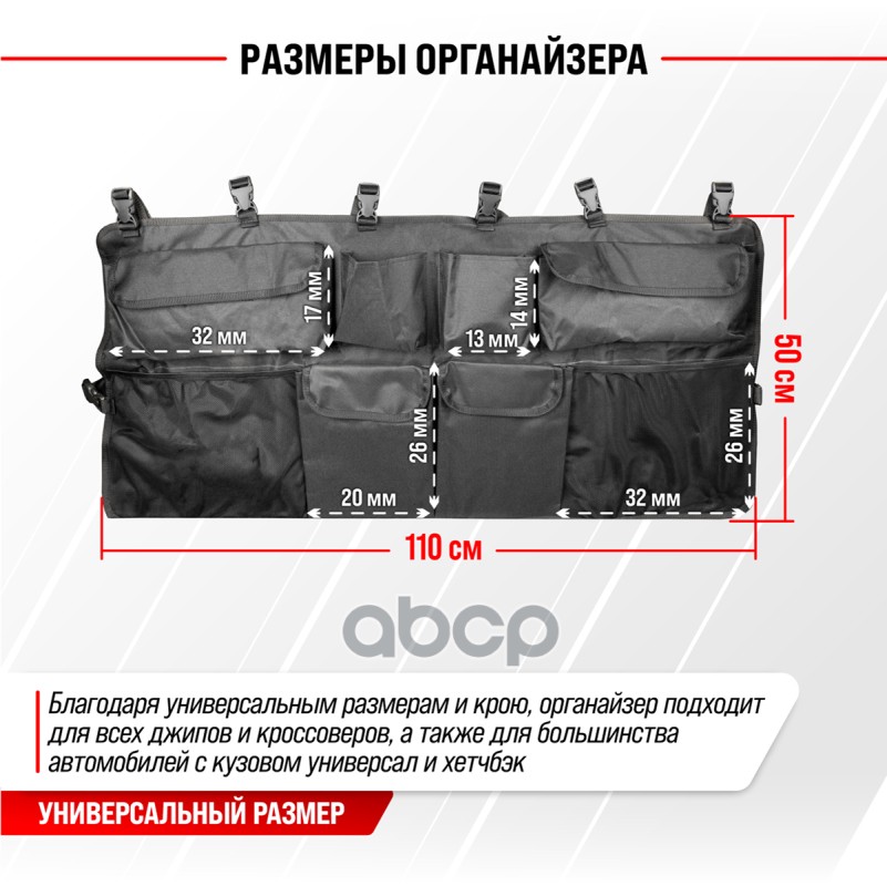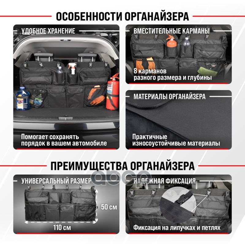 Наименование: Органайзер в багажник SKYWAY 110*50см с карманами крепление на сиденья SKYWAY RUS