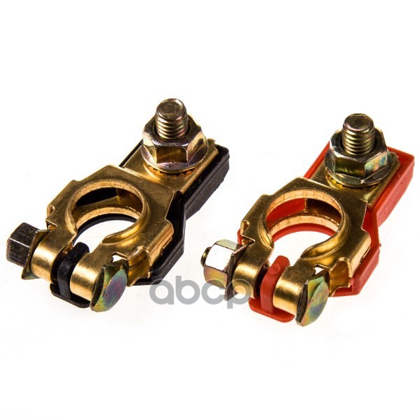 Наименование: Клеммы АКБ Европа медные SKYWAY с креплением провода зажим болтовой с защитными колпачками верхний компл. 2шт 015 SKYWAY