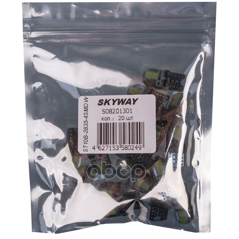 Купить запчасть S08201301 Автолампа диод W5W (T10, 194) W2.1x9.5d 12V 4SMD 1-конт 0,2W 80Лм SKYWAY биполяр 6000К Белая, пакет с подвесом min2 SKYWAY с доставкой в Эль-Монте.