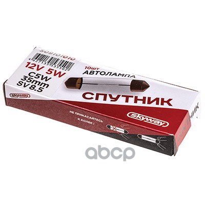 Бренд: Skyway, артикул: S09101010, Лампа 12 В 5 Вт салонная пальчиковая 35 мм SV8.5 Спутник Skyway 00000183952.