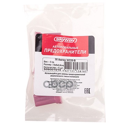 Наименование: Предохранитель 30 A W228-B картриджного типа Skyway 00000199522