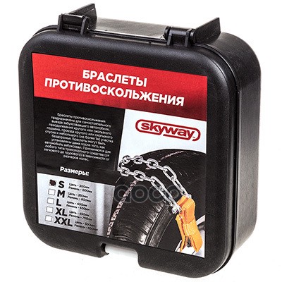 Наименование: Браслет противоскольжения на колеса SKYWAY модель S-легковые длина 300мм в коробке 2шт. (ТА-СS2) SKYWAY RUS