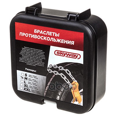 Наименование: Браслет противоскольжения на колеса SKYWAY модель M-кроссоверы длина 350мм в коробке 2шт. SKYWAY RUS