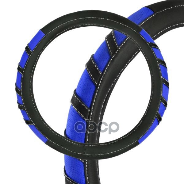 Оплетка экокожа M (37-39 см) SKYWAY Design Combo-2 Черная/синяя, белая строчка SKYWAY