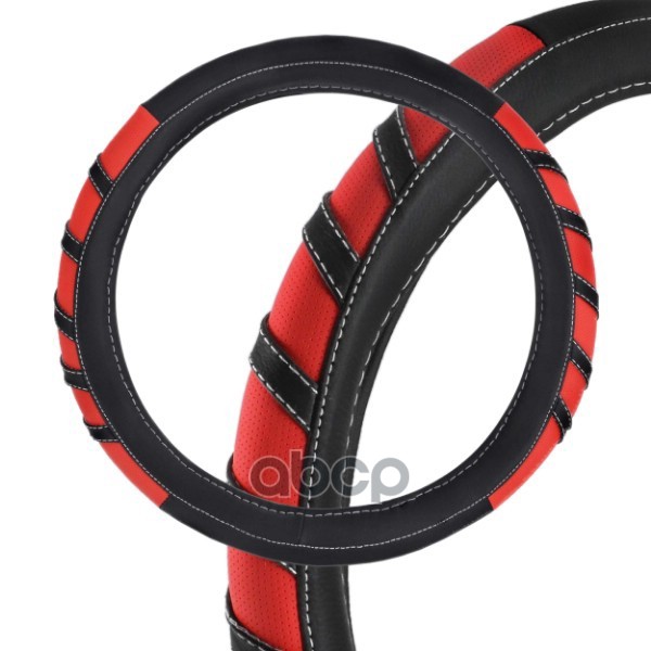 Оплетка экокожа M (37-39 см) SKYWAY Design Combo-2 Черная/красная, белая строчка SKYWAY