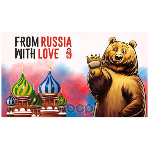 Флаг прямоугольный на липучке "FROM RUSSIA WITH LOVE" (мишка) (140х240) (уп.1шт) SKYWAY SKYWAY RUS