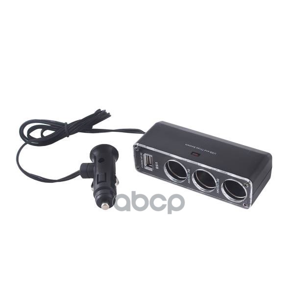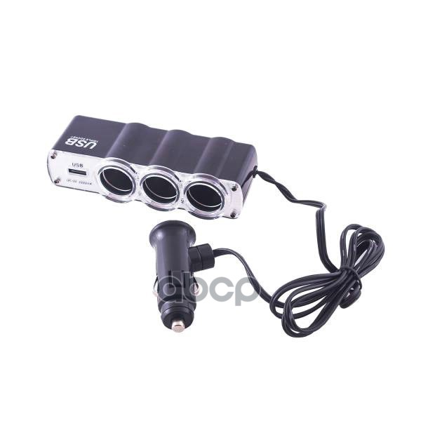 Разветвитель прикуривателя 3 гнезда + USB SKYWAY Черный предохранитель 5А, USB 2A S02301023 SKYWAY
