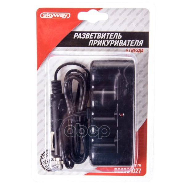 Разветвитель прикуривателя 3 гнезда + USB SKYWAY Черный предохранитель 5А, USB 2000mA S02301024 SKYWAY