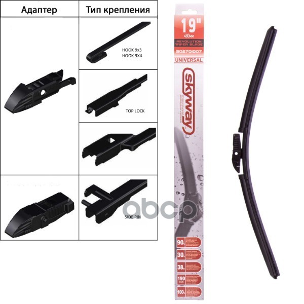 Щетка стеклоочистителя бескаркасная SKYWAY универсальный адаптер в коробке 53см/21" SKYWAY