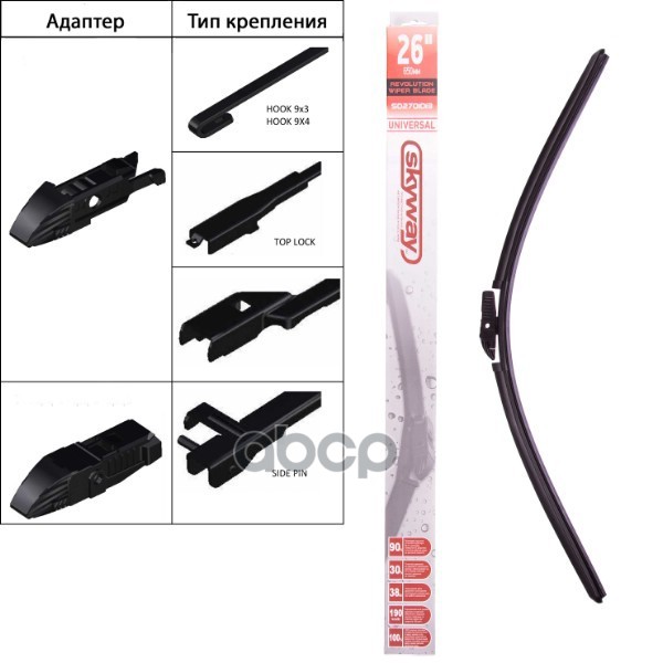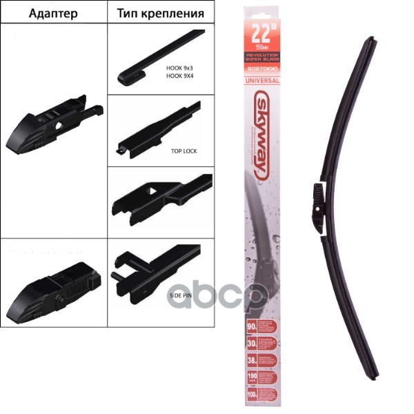 Щетка стеклоочистителя бескаркасная SKYWAY универсальный адаптер в коробке 55см/22" SKYWAY