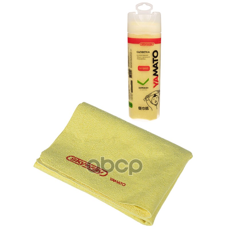 Салфетка замша искусственная 64*43см SKYWAY большая в тубе c микрофиброй гибридная YAMATO SKYWAY