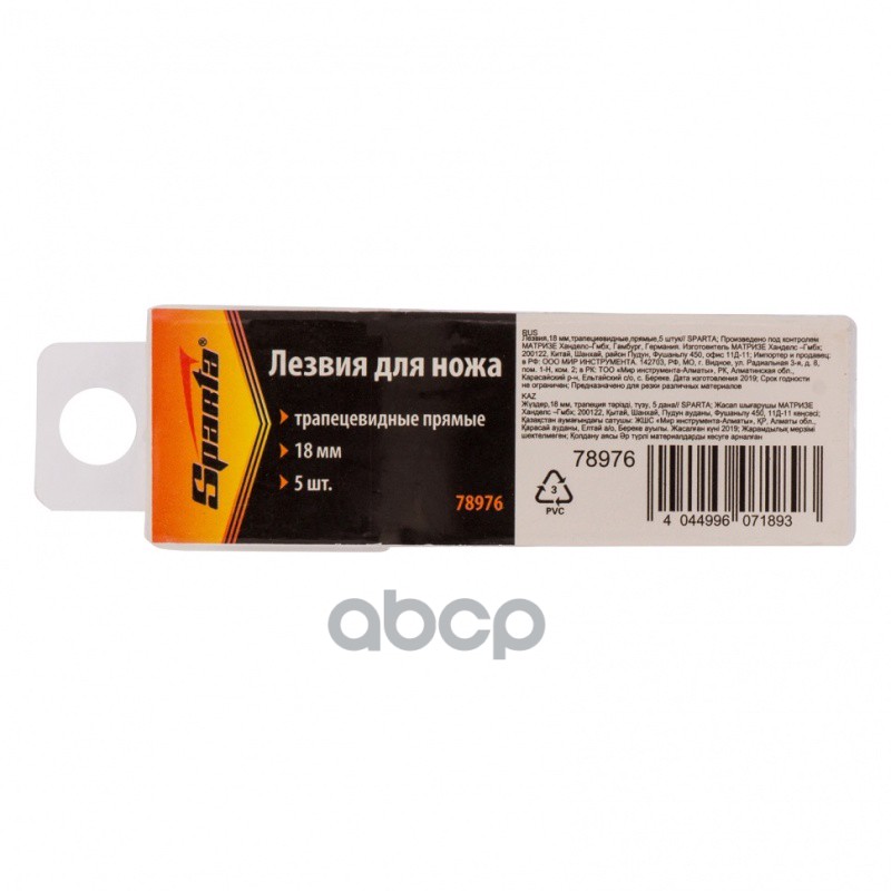 Наименование: ЛЕЗВИЯ,18 ММ,ТРАПЕЦИЕВИДНЫЕ,ПРЯМЫЕ,5 ШТУК SPARTA