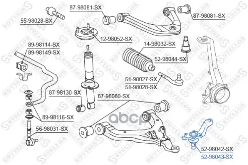 Купить запчасть 5298043SX опора шаровая нижняя левая Toyota Land Cruiser 95-02 с доставкой в Эль-Монте.