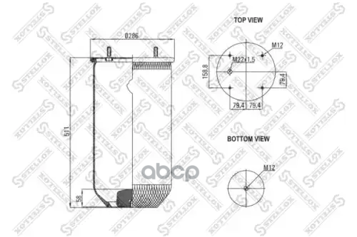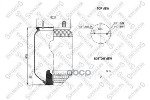 пневмоподушка со стак Voss 232 2шп-шт.M16+M16/24 смещ.26 1отв.M16 MB Actros I/II/III