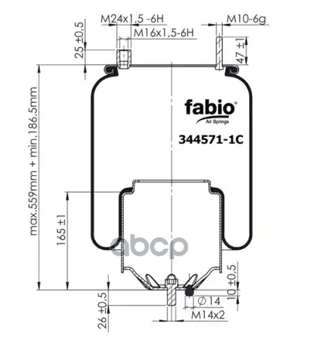 пневмоподушка со стак1шт.М16x1.5 смещ.80 1шп.D12 1шп.D11.2 порш пласт M16Volvo,Scania