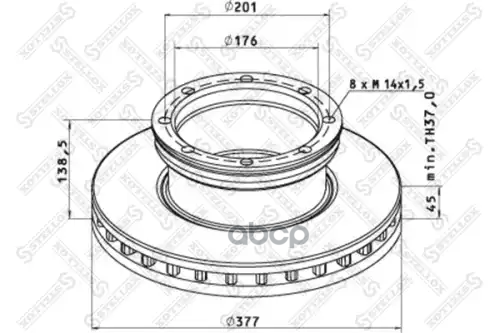 85-00712-SX диск тормозной 377/162x45/128 10n-195-M14x1.5 MAN L/M2000 12/13/14/15.280