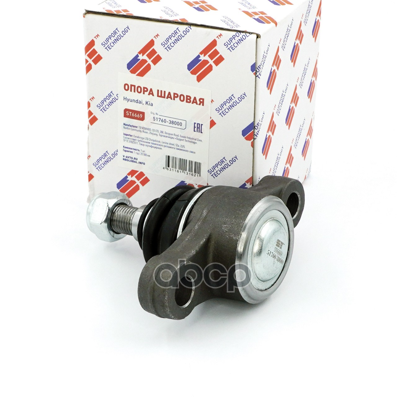 Бренд: Support Technology, артикул: ST6669, Шаровая опора Hyundai Sonata (EF) IV 98-; Kia Magentis 01- нижняя ST 51760-38000 5176038000;517603F000;5176138A00;5450038010;5450038620;545003F000;5450138010;5450138620;545013F000;CB0185;CBKH20;CBKK13;29282;C1162LR;. |
