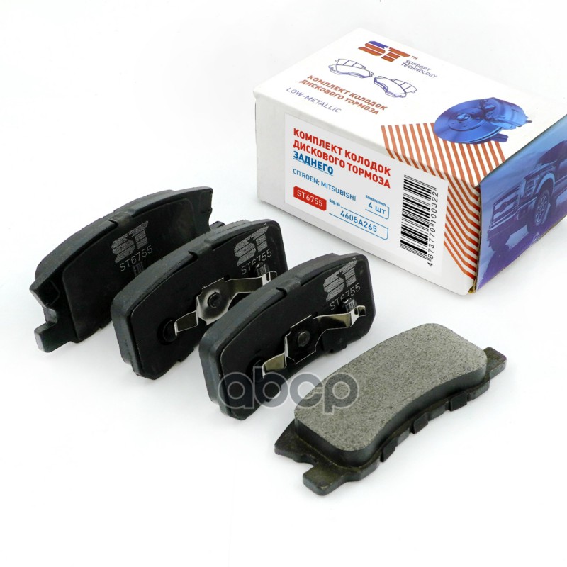 Бренд: Support Technology, артикул: ST6755, Колодки тормозные Mitsubishi ASX 10-, Outlander XL 06-12, Pajero 00-07; Citroen; Peugeot задние ST 4605A265 128419107;68020256AA;68020262AA;68028671AA;68033078AA;V2011271AA;V2011271AB;1606294580;1611838980;425390;425391;425448;4605A265;4605A447;4605A448;4. |