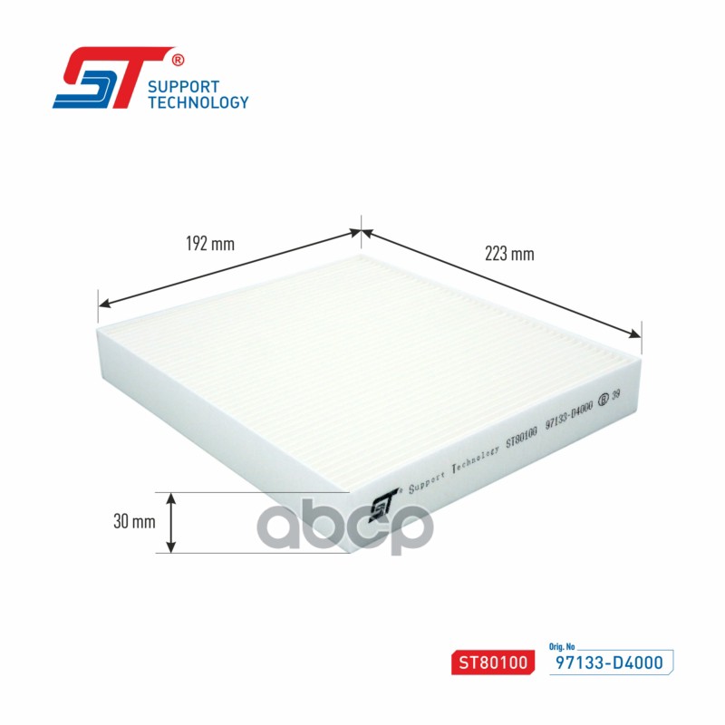 Бренд: Support Technology, артикул: ST80100, Фильтр салона Kia Optima 15-; Hyundai Sonata 15- ST 97133-D4000 97133C2000;97133D4000;S97133D4000;K1421;LAC333;LAC333C;. |
