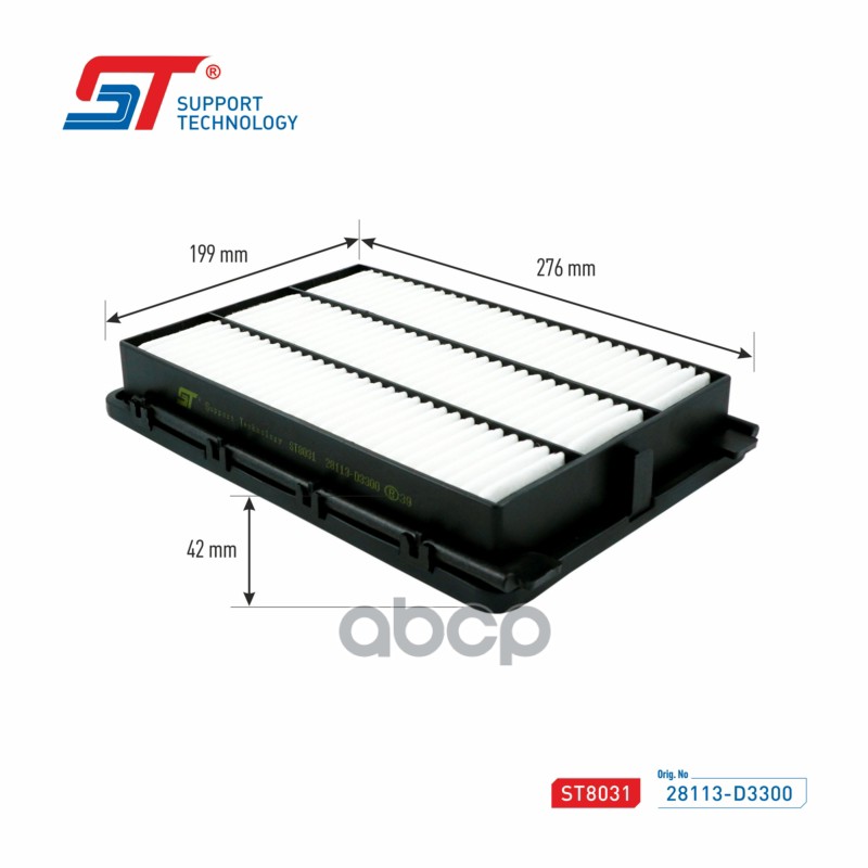 Бренд: Support Technology, артикул: ST8031, Фильтр воздушный Hyundai Tucson (TL) 15-; Kia Sportage (QL) 15- ST 28113-D3300 28113D3300;AP1974;C28035;LA502;. |