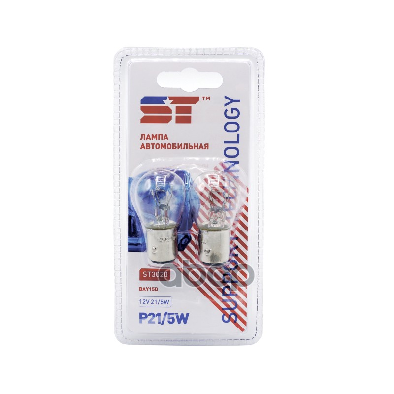Лампа 12 В 21/5 Вт 2х-контактная металлический цоколь блистер 2 шт. ST ST3020 P21/5W;BAY15d;