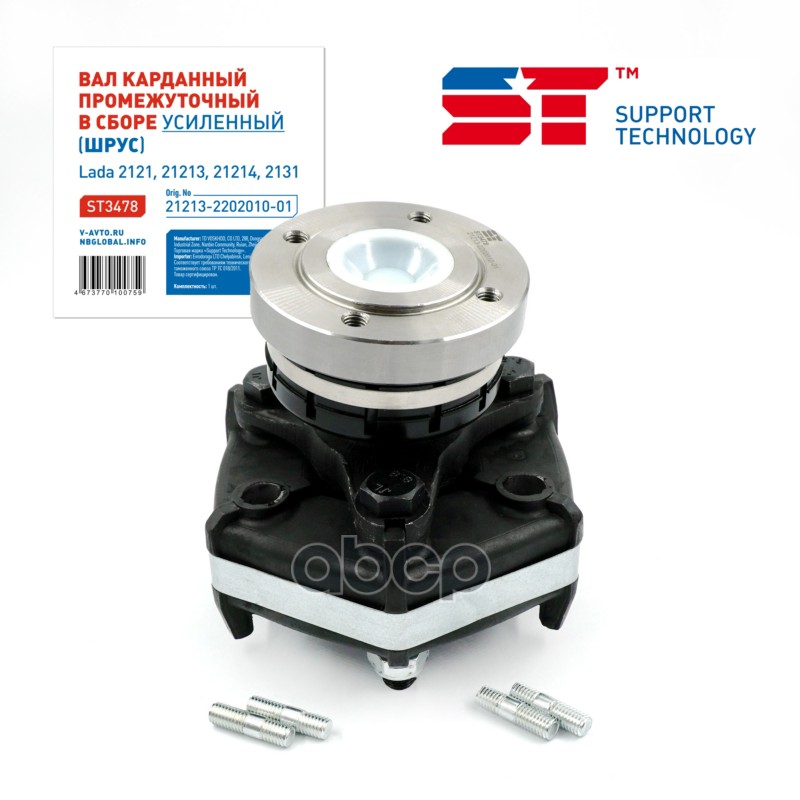 Вал карданный промежуточный для а/м ВАЗ 2121, 21213 в сборе с эластичной муфтой усилен (ШРУС) ST