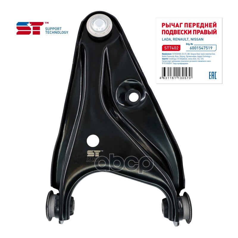 Рычаг Lada Largus 12-14; Renault Logan 04-, Sandero передний ST правый 6001547519 545000794R;545004269R;6001547519;6001549182;6001550447;6001550910;6001550912;8200792640;8200820918;8200910717;545004269R;5450000Q1F;5450000Q1G;5450000Q1L;545005165R;CQ0287R;
