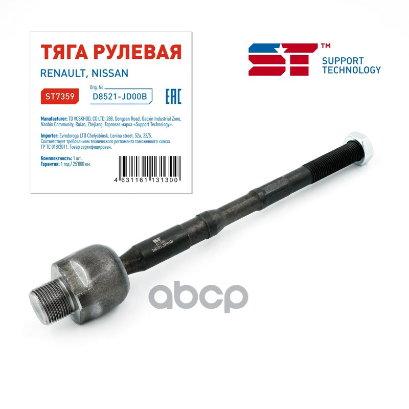 Тяга рулевая Nissan Qashqai (J10E) 07-13, X-Trail (T31) 07-15; Renault Koleos 08-16 ST D8521-JD00B 48001JD900;48001JD90B;D8521JD00B;D8521JG00A;485219204R;3641701;CR0486;CRN51;CRSS3;