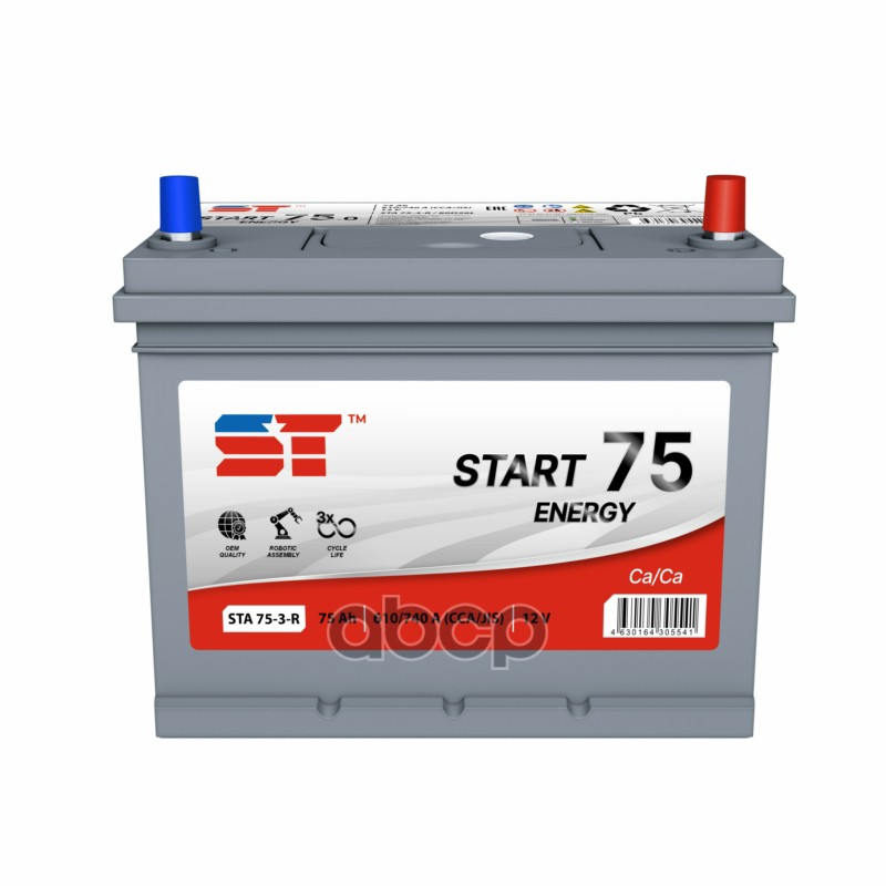 Аккумулятор Asia 75 А/ч обратная полярность ST Start ток 610 А 260x175x225